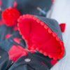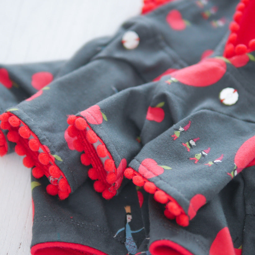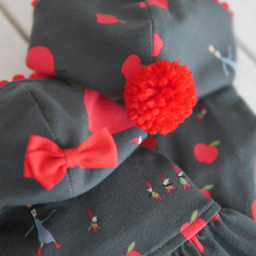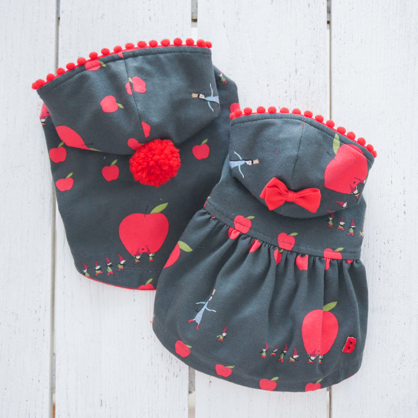 お袖はわんちゃんの体形にもよりますが七分丈位をイメージした長さで、少しだけベルスリーブ風にデザインしております。